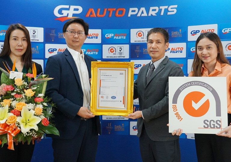 G.P. Auto Parts Co., Ltd. has been awarded the ISO 9001:2015 Quality Management System Certification by SGS (Thailand) ISO 9001:2015 is an international standard used to control internal management systems within an organization. It aims to enhance customer satisfaction and promote continuous improvement in operations, ensuring the quality of services while building trust. Additionally, it drives personnel performance to align with the organization’s strategic goals. (คณะผู้บริหาร บริษัท จี.พี.อะไหล่ จำกัด) G.P. Auto Parts Co., Ltd. never stops evolving and improving as an organization. “Our goal is to become a leading automotive parts distributor, recognized for our integrity, professionalism, and excellence in service.”