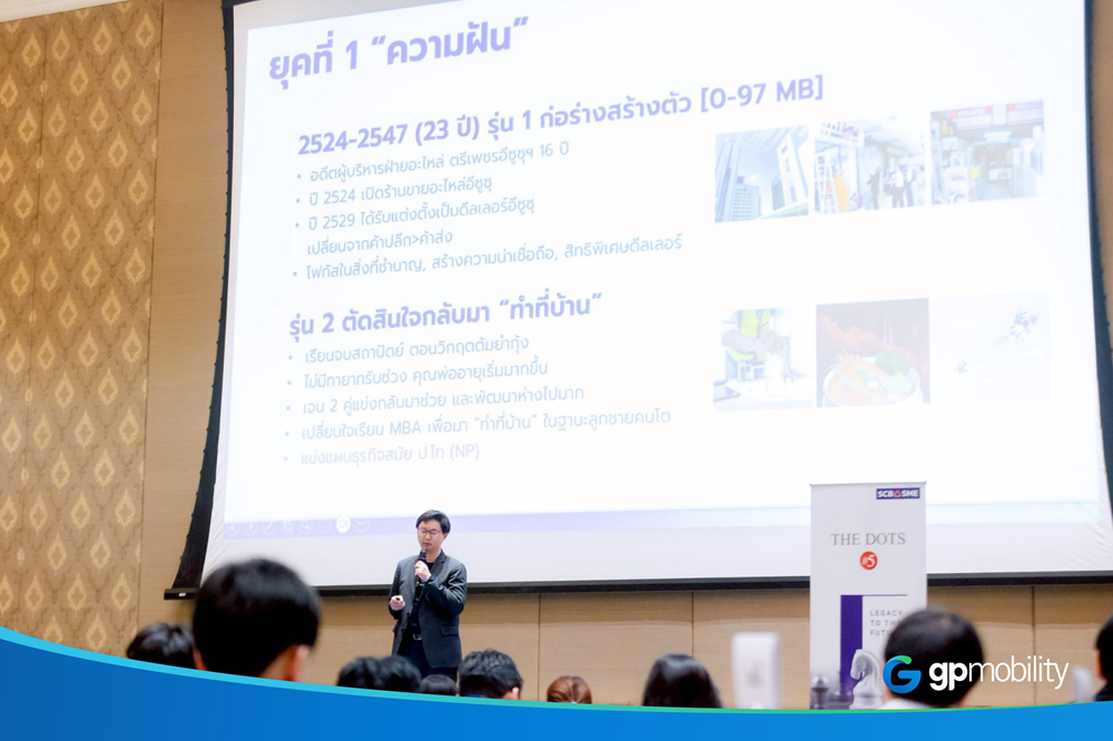 ในโอกาสนี้ คุณ กวีศิลป์ ศิริมณีธรรมประธานเจ้าหน้าที่บริหาร บริษัท จี.พี. โมบิลิตี้ จำกัด (มหาชน) ได้รับเกียรติเป็นหนึ่งใน Speaker คนสำคัญ ถ่ายทอดแนวคิดและประสบการณ์การพาธุรกิจครอบครัวเติบโตต่อเนื่องกว่า 17 ปี (2008 – 2025) จากร้านอะไหล่รถยนต์ในตึกแถวหนึ่งคูหา สู่บริษัทมหาชนที่มียอดขายระดับ 2,000 ล้านบาท